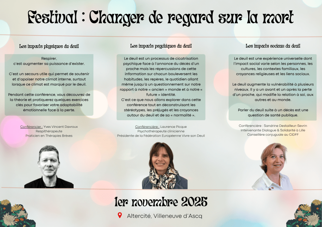 Le Festival Changer de Regard sur la Mort s’inscrit dans cette dynamique : un événement ancré dans le Nord, mais relié à un mouvement plus vaste — celui de la réconciliation avec la mort.