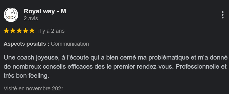 Partisane d’une vision holistique de l’être humain, je t’accompagne dans ton intégralité : nous travaillons aux niveaux émotionnel, mental, physique, comportemental et spirituel tant dans les sphères personnelle que sociale (professionnel, famille, couple, amical…).