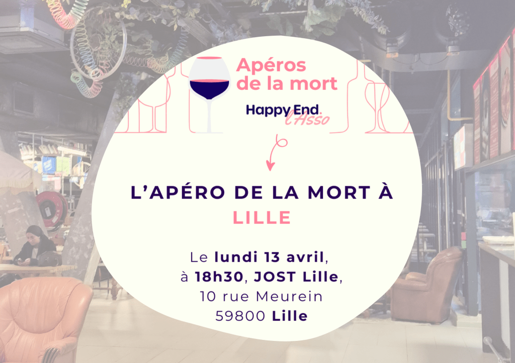 L’Apéro de la Mort est un espace bienveillant et sans tabou où l’on se retrouve autour d’un verre (avec ou sans alcool) pour parler de la mort, du deuil et de la fin de vie.